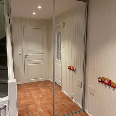To skyvedører i speil til garderobe selges billig. De er god stand, men selges da de blir for høye etter jeg la nytt gulv.