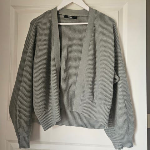 Bik Bok Andre jakker i grønn farge, størrelse L. Jakken har blondedetaljer og glidelås foran. Materialet er lett og delikat, egnet for kvinner.