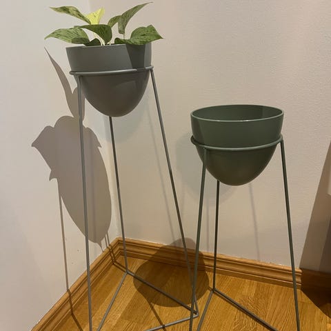 Stor fin vase i en lys grågrønn farge. Husker ikke hvor den er kjøpt. Den er ca 62 cm høy og 30 cm i diameter på det bredeste. Hullet er 6 cm. Veldig fin og dekorativ, selges fordi den ikke passer inn der jeg bor nå.