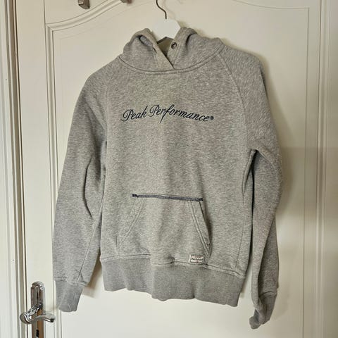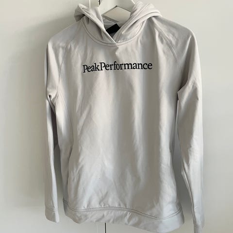 Lang hettejakke fra Peak Performance til dame. Pent brukt. Har innsydd et tynt lag med isolasjon/vindstopp på jakkens framside (se bilder). Noe nupper. Noe søm i mansjettene hadde løsnet, de er nå sydd/reparert og ikke synlig. OBS!: Skal vaskes på 30 grader med glidelås lukket og innsiden ut.
