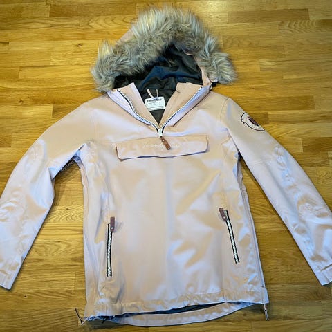 Selger en pent brukt rosa anorakk av merket Twentyfour. Størrelse 10 år. Kan starte å brukes an yngre da kan snøres inn i rygg.