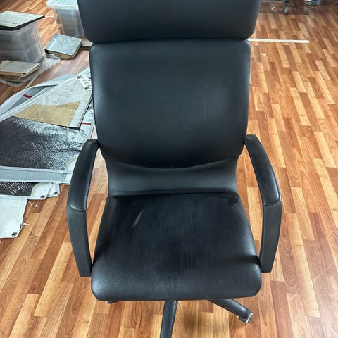 svart kontorstol selges for 100kr på grunn av at den ikke blir brukt.