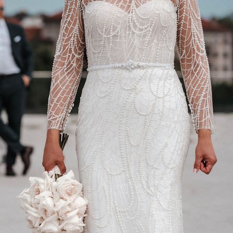 Selger denne nydelige brudekjolen da den ikke ble brukt. Kjøpt ny på brudesalong på Bryne. Finnes kun en av denne, så den er helt unik.