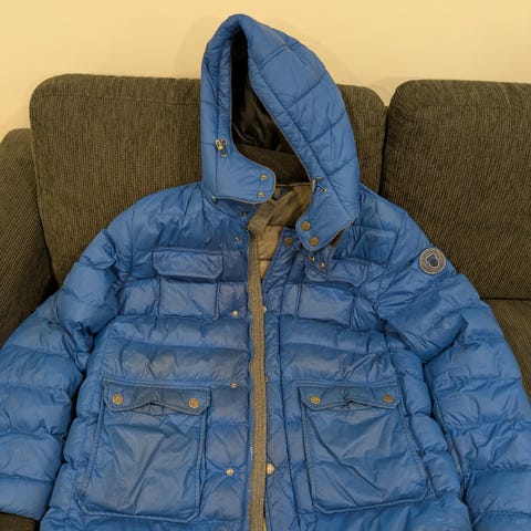 Den er ca 15 år gammel. Veldig praktisk jakke med mange lommer både utenpå og inni. Populært merke. Passer til både menn og damer. Den er størrelse XL, men til Herre er den mer som en medium/ large. Håper noen kan ha glede av denne!