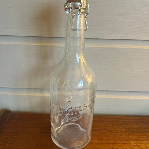 Eldre hansa flaske med porselens kork.