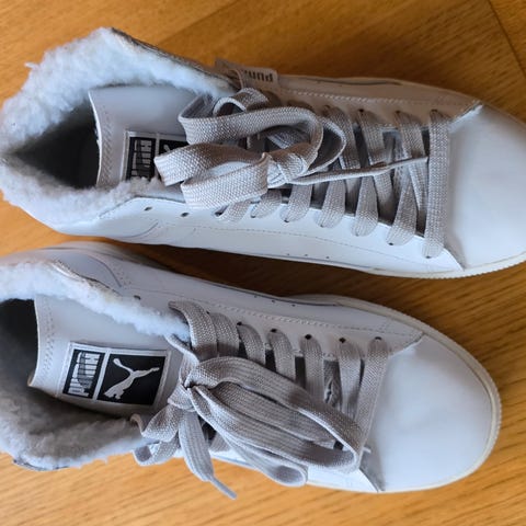 Puma støvler i størrelse 40, beige farge. Støvlene har snøring foran og glidelås på siden for enkel på- og avkledning. Sålen er hvit med mønster for godt grep. Materialet ser ut til å være syntetisk, egnet for hverdagsbruk.