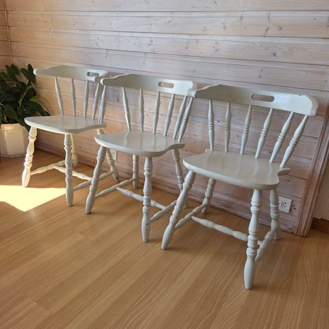 3 stk - Solide eldre kjøkkenstoler i heltre