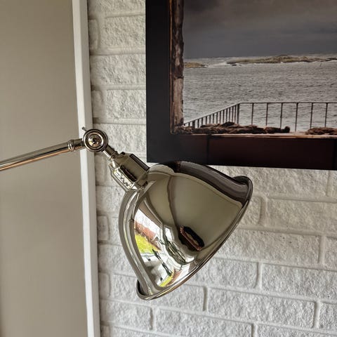 Lekker champagnefarget lampe, som gir et fint gyldent lys.