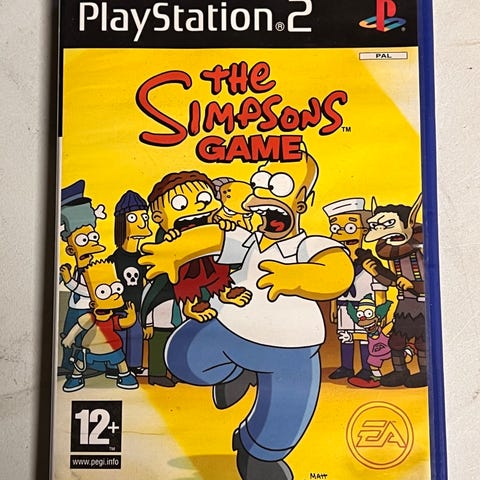 The Simpsons Game for Playstation 2. Spill med kjente karakterer fra The Simpsons, inkludert Homer, Marge, Bart, Lisa og Maggie. Inkluderer over 40 oppdrag og mange forskjellige miljøer fra serien. Passer for aldersgruppen 12 år og oppover. Spilleren kan utforske Springfield og bruke spesielle krefter for å løse oppgaver.