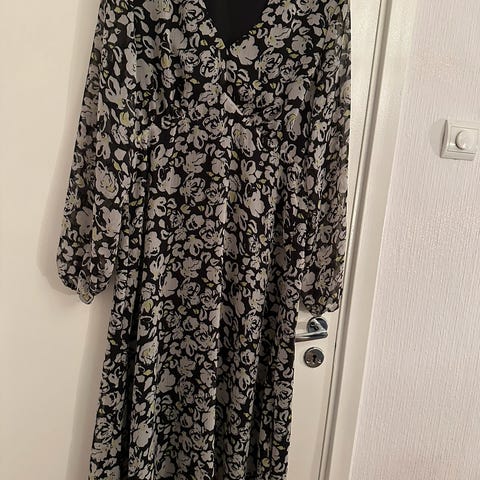 Marie Philippe Festkjole i størrelse XXL, blå farge med paljett- og fløyelsdetaljer. Kjolen har lange ermer, v-hals og glidelås bak. Kjolen er foret med behagelig stoff. Egnet for formelle anledninger og festbruk. Kun brukt en gang, en lekker kjole i meget god stand.