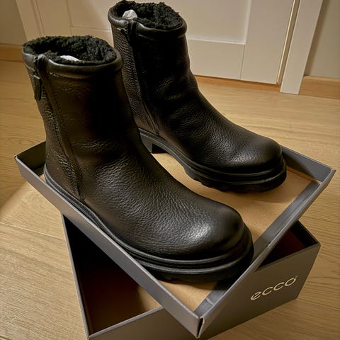 Ett par ECCO Grainer Chelsea boots, sort skinn, ubrukt . Str.41 . Selges i butikk nå for 1900,-