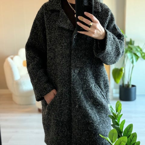 Nydelig oversized ullkåpe fra Flattop/Urban i str. XS. Stor i størrelsen så vil kunne passe en S-M også. Ullblanding av 50% ull og 50% polyester. Innerstoffet har raknet nederst i løpet av tiden (sebilde). Bortsett fra dette har ikke kåpen noe bruksmerker!
