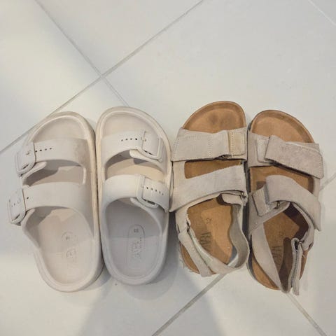 To par hvite sandaler selges samlet.