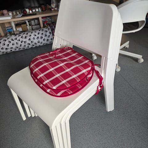 8 pent brukt spisestuestoler i malt antikkrødt/ bonderødt.