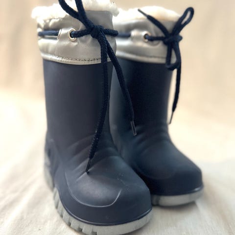 Fine blå regnstøvler til barn, str 23. Pent brukte, noen bruksmerker.