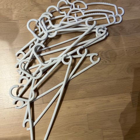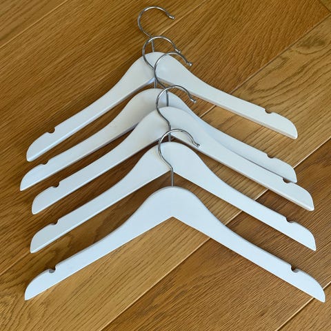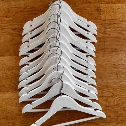 17 hvite barnekleshengere i tre