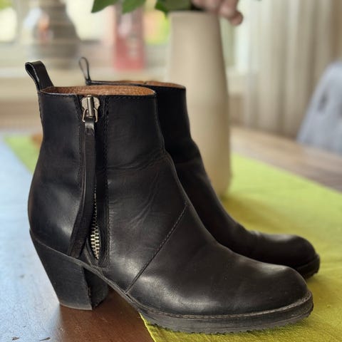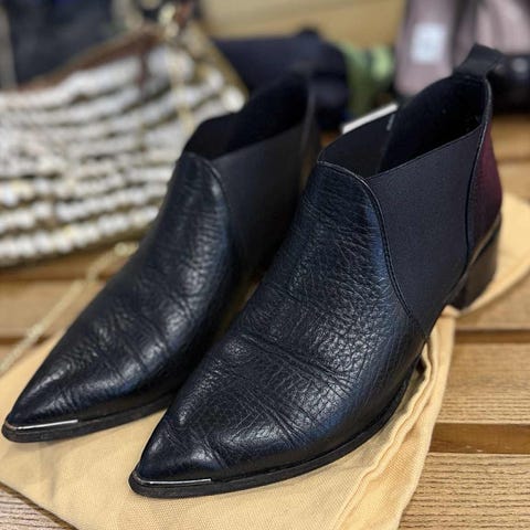 Stilige sko fra Acne Studios i svart skinn, Størrelse 40. Skoene har spiss tå og dobbel spenne på siden.