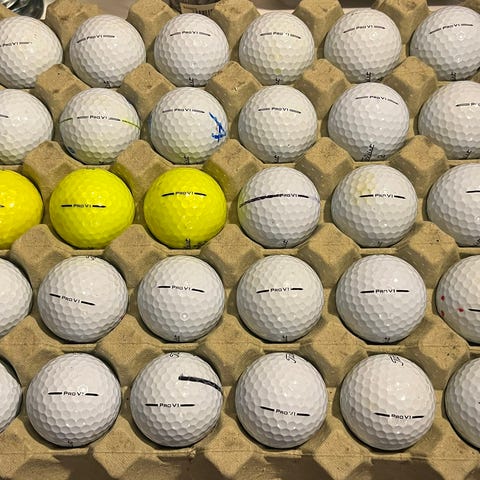 Gode golfballer selges av merkene srixon og taylormade. 27 stk. titleistballene følger ikke med.