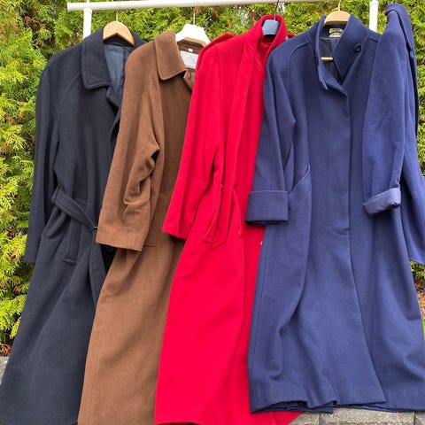 Tilstand? Pent brukt, men hjemmesydd og velbrukt. Løkkene ligner nå mer løse tråder, plastikkhempe er mest til pynt (med litt uforstående design), men det er fremdeles et nydelig stykke novacheck ullstoff (høy meterpris), uten både hull og nupper (forbehold om uoppdaget rufs).