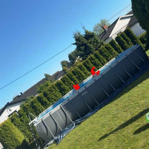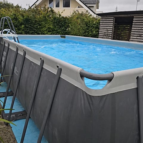 Bassenget er 400 cm i lengde 200 cm i bredde og 100 cm i høyde.