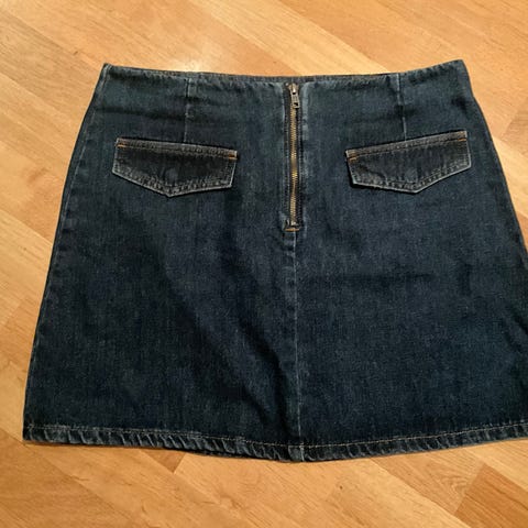 Fôret denimskjørt fra Ganni. Skjørtet er fôret og litt tykt. Perfekt for høst/ vinter.