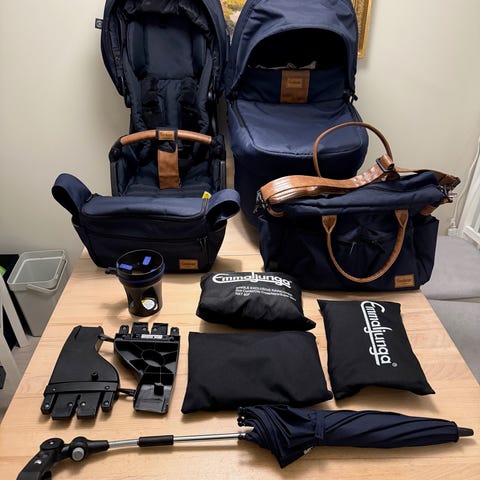Her får du en praktisk og pen barnevogn med alt du trenger av utstyr 😊