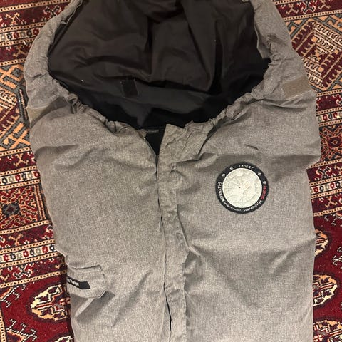 Essygrow vognpose i fargen grå selges. Fuskepelsen følger også med, men den ble tatt av ved vasking. Ingen flekker eller hull som jeg har sett.
