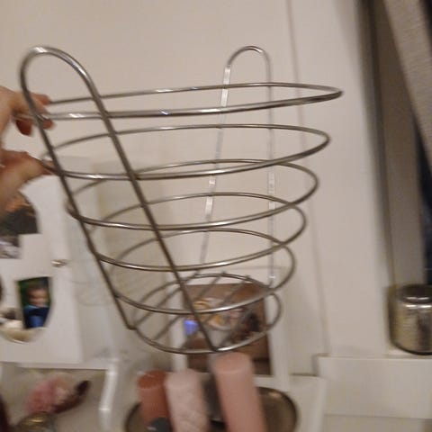 Hengende fruktkurv, håndflettet ståltråd