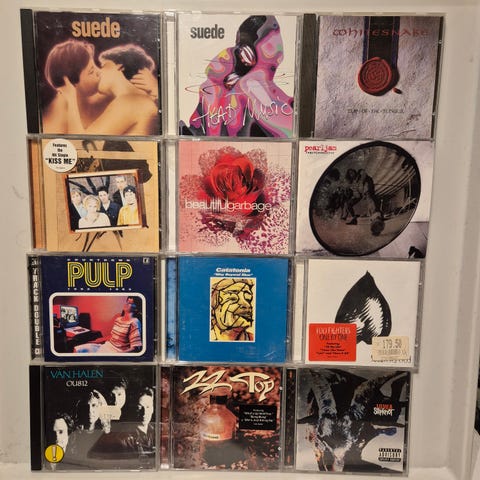 Samling av CD-er med musikk fra 1990-tallet, inkludert ulike hits og samlealbum. CD-ene har forskjellige coverdesign og inneholder flere sjangere og artister fra perioden. Egnet for samlere eller de som ønsker musikk fra 90-tallet.