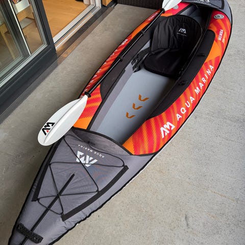 Pelican Summit 100X kajakk i blå farge. Egnet for en person, laget av slitesterkt materiale. Inkluderer åre og elastiske stropper for oppbevaring på fronten. Passer til bruk på innsjøer og rolige elver.