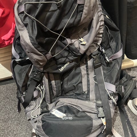 Ryggsekken har en kapasitet på 75 liter og er designet for utendørs bruk. Den har flere justerbare stropper og lommer for oppbevaring av utstyr. Pent brukt, normale bruksmerker friluft ryggsekk tursekk veske bag reise