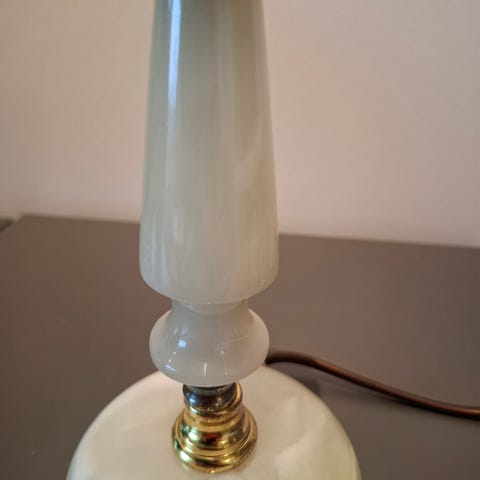 Vintage bordlampe i onyx og messing med løveføtter. Lys og stil
