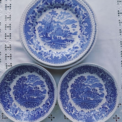 jed har flere middagstallerkner fra samme servisen som har egen annonse