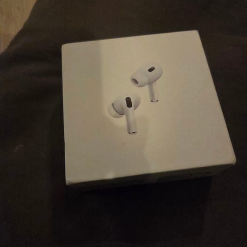 Selger AirPod og etuiet. AirPoden som selges er venstresiden. Selges med eske, nye propper både rosa og hvite, etui og den 1 AirPoden. Gen 1. Disse ble kjøpt april 2025 på appel sin egen nettside. AirPoden og etui blir vasket og renset før kjøp. Åpen for bud. Ta kontakt.