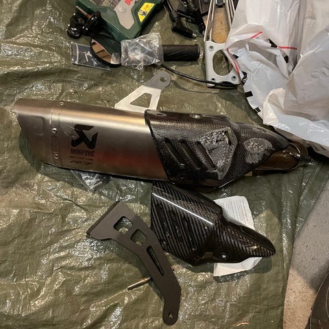 Akrapovic motorcykel eksosanlegg i rustfritt stål. Inkluderer lyddemper og tilkoblingsrør. Passer til 2015-2019 yamaha mt. Materialet er rustfritt stål med karbonfiber avslutning på lyddemperen. Produktet er brukt og viser noe slitasje.