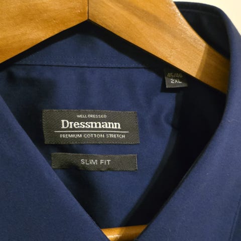 Dressmann Slim Fit skjorte i størrelse XL for menn. Skjorten er beige og laget i et lett og pustende materiale. Den har en klassisk krage og knappestolpe, med et strukturert stoff som gir et subtilt mønster. Kun prøvd på, selges pga feil str.