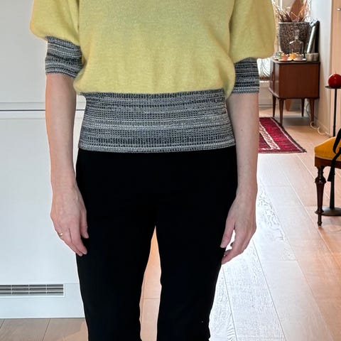 Genseren har en løs passform med trekvart lange ermer og er laget av en blanding av ull og mohair .