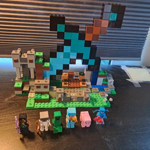 Diverse Lego Minecraft selges samlet som bilder vises ,uten esker mangler en byggeanvisning .