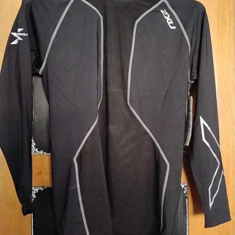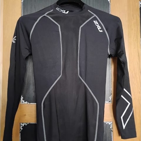Asics langermet sportsgenser i svart med grønne detaljer, størrelse S for menn.