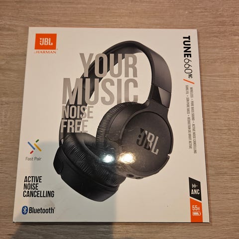 Selger et par JBL Tune 660NC trådløse hodetelefoner med aktiv støydemping og svært god batteritid. Et lett og praktisk headset som er perfekt til pendling, reise, jobb og hjemmebruk.
