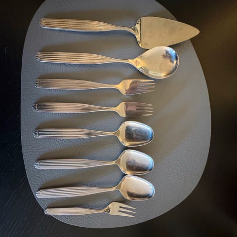 Seks suppetallerken og fem middagstallerken .
