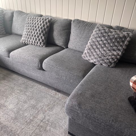 Pen gråmelert hjørnesofa selges (da vi bytter farger i stuen.