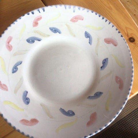 Larholm, norsk keramikkfat - dekorasjonsfat med håndmalt blomsterdekor i flere farger.