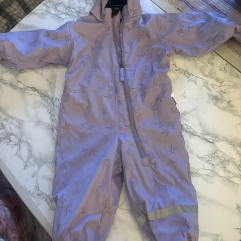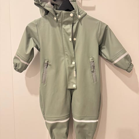 Flott regndress uten for til de minste. Uten hull. Strikken i bena er blitt slapp og ikke så god lengere. Ellers er dressen uten anmerkninger.