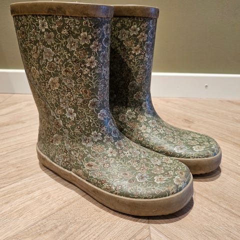 Nydelig mønstret gummistøvler selges da de er blitt for små. Hele og fine, men trenger en vask.
