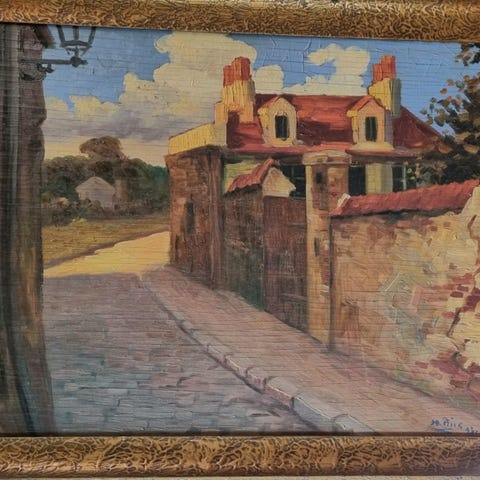 MALERI, OLJE PÅ LERRET. "KATTER PÅ TAKET"