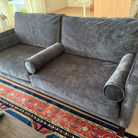 ""RESERVERT""Gis bort: en sofagruppe fra MARK-serien, bestående av 2-seter og lenestol, som har stått i stuen i familiens ferieleilighet. Møblene har vært svært lite brukt, og fremstår som strøkne. Stoff-trekkene er nyvasket, og det finnes ikke spor av flekker eller slitasje.