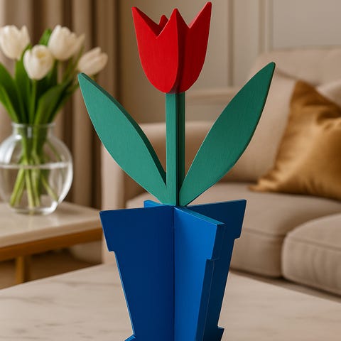 Håndlagde Tulipaner av tre i forskjellige farger