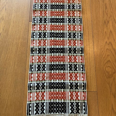 Flott vevd løper. Tror den opprinnelig kommer fra Vestlandet. Ikke brukt. Mål uten frynser. Selges høystbydende over kr 450