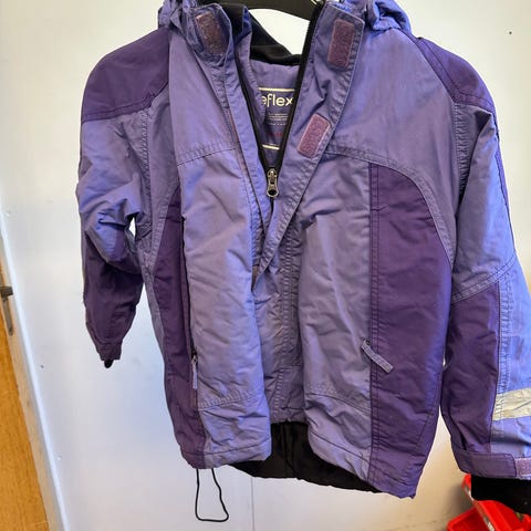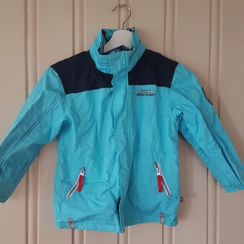 God høst-/vinterjakke i str 116/6 år. Hetta kan kneppes av.
